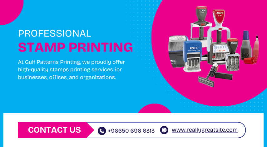 At Gulf Patterns Printing, we proudly offer high-quality stamps printing services for businesses, offices, and organizations. We understand that stamps are an essential part of daily business operations, and they represent your company’s professionalism and identity. That is why we provide durable, clear, and professionally designed stamps to meet your business needs.